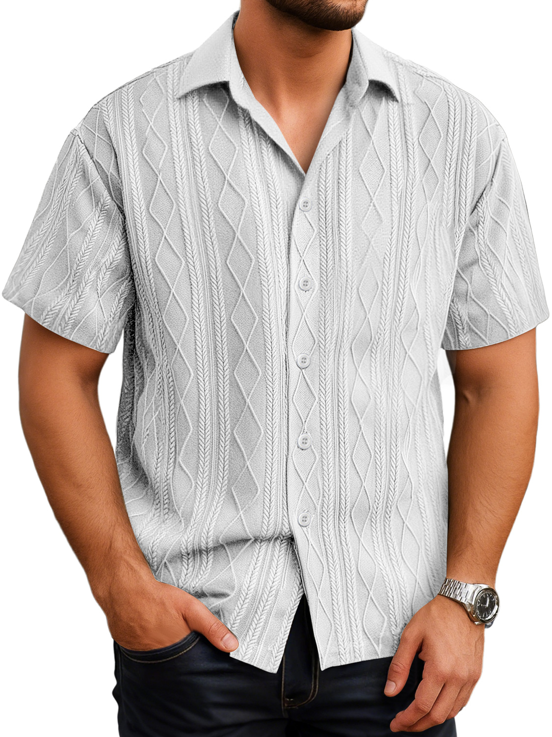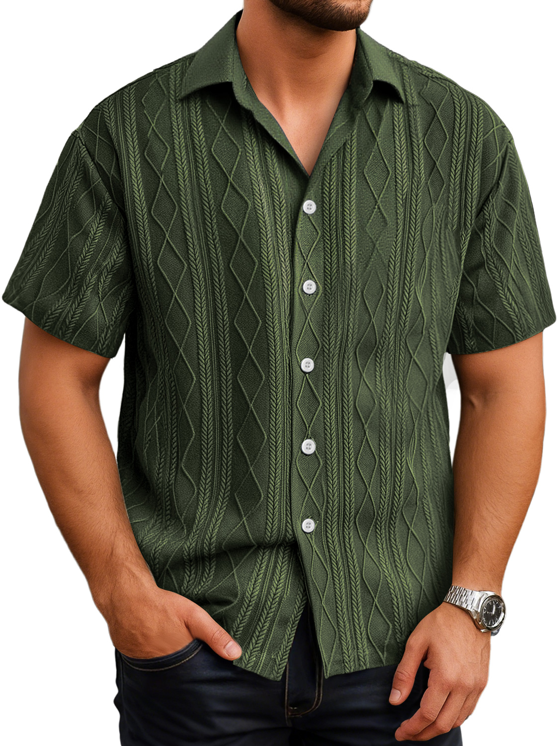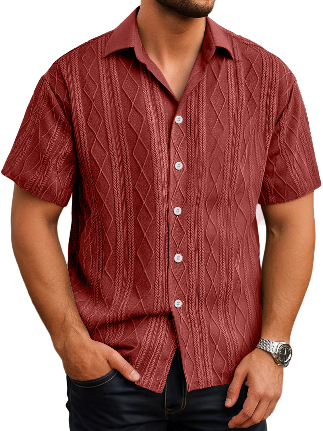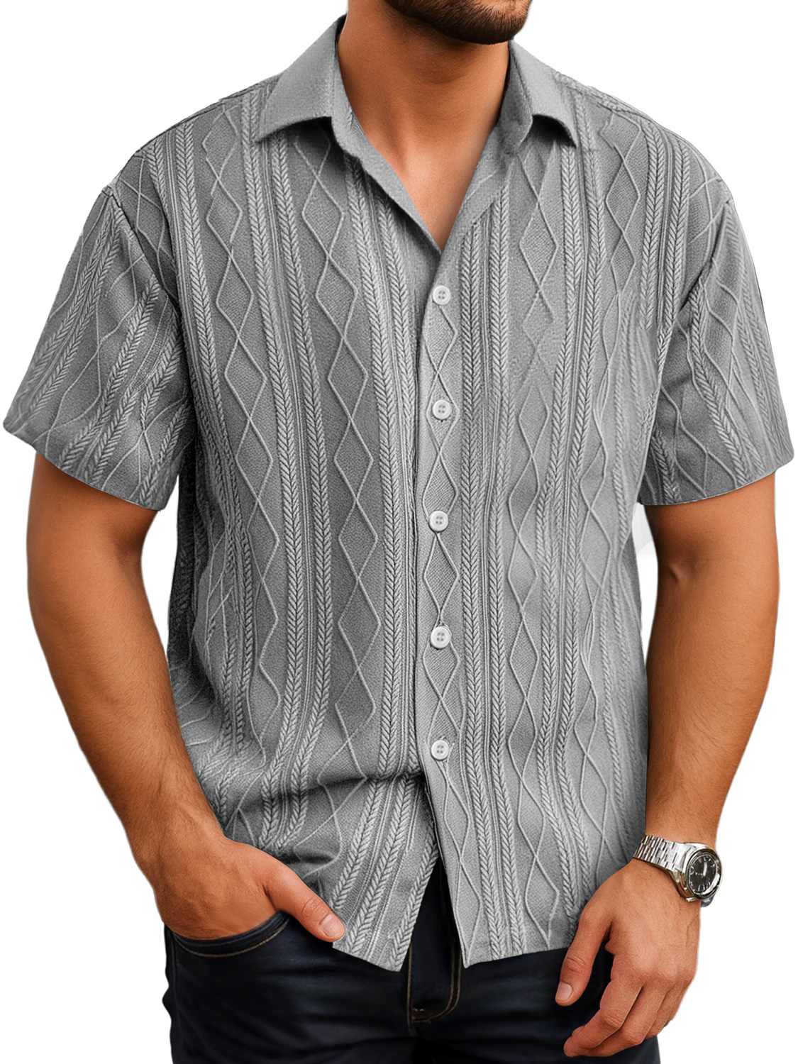 Herren Daily Texture Casual Revers Einfarbig Kurzarmhemd
